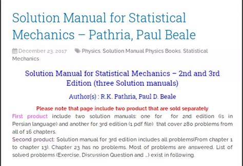 Read Solution Statistical Mechanics Pathria Doc By Click Button. Solution Statistical Mechanics Pathria it’s easy to recommend a new book category such as Novel, journal, comic, magazin, ect. You see it and you just know that the designer is also an author and understands the challenges involved with having a good book. You can easy klick for detailing book and you can read it online, even you can download it
